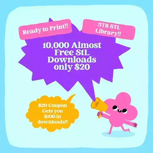 A Coupon Code worth $100 to download anything u want from our site. We have high quality ready to print STL's. You can pick and choose the ones u want. These STL's are unrestricted. Use them as u please for personal or commercial use.