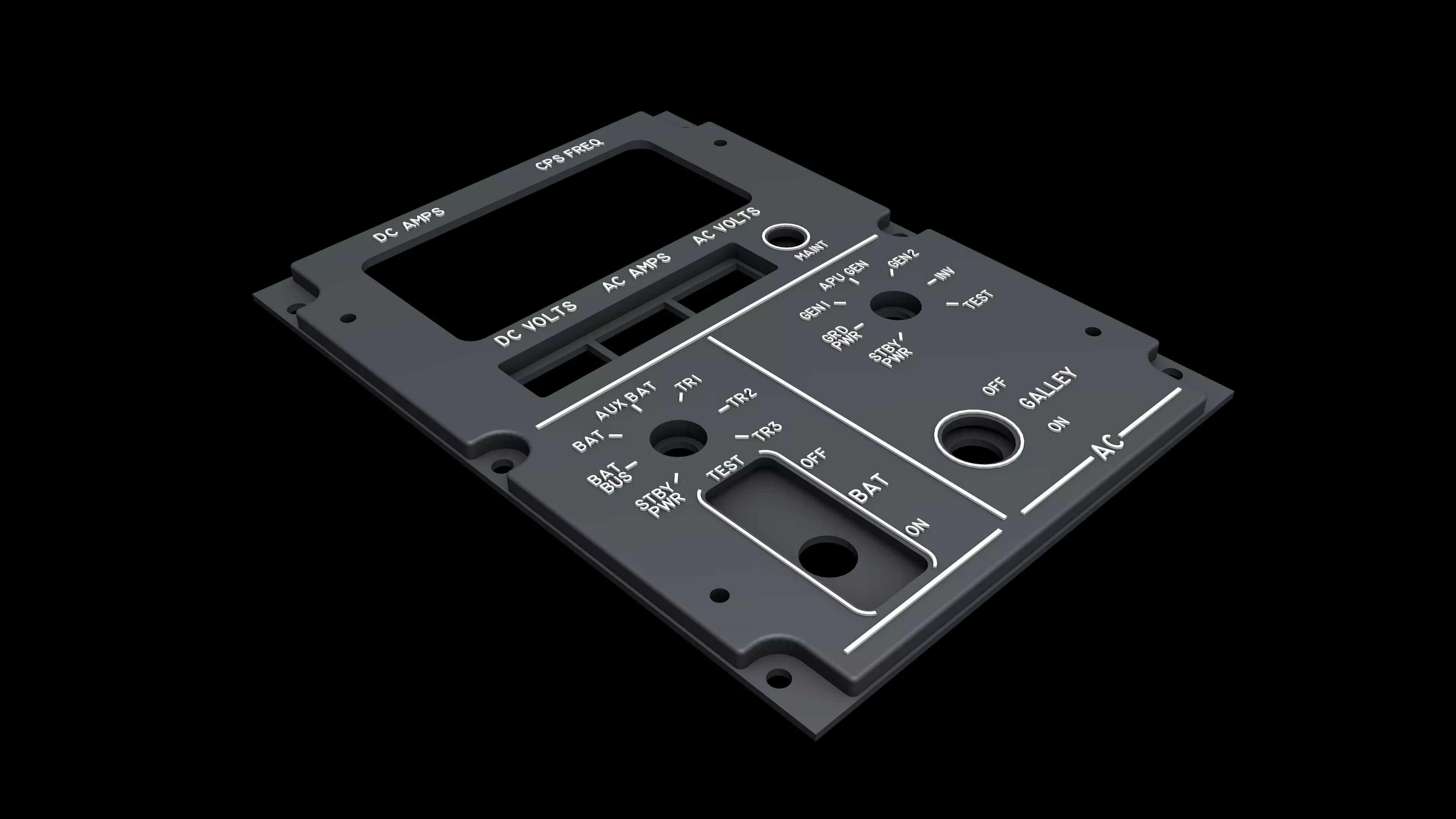 This model includes the following panels (With both back-plate and front-plate at real accurate aircraft scale and ready for 3D printing):