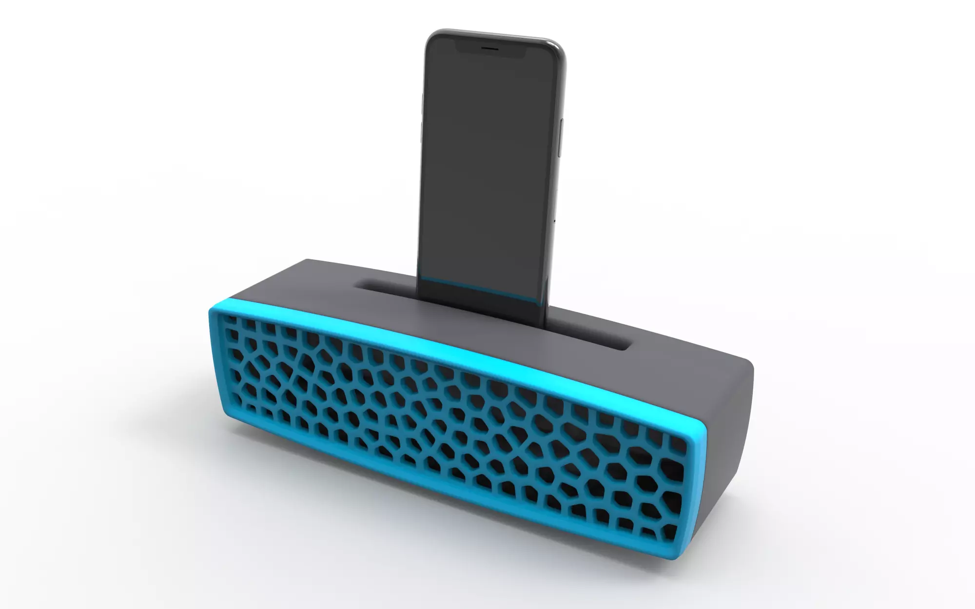 The speaker consists of two main parts: the horn and the body. The horn acts as a cover and projects sound forward through its Voronoi pattern. The body of the speaker functions as a resonance chamber, naturally amplifying the sound. These two parts are joined by a press-fit lip along the edges of each piece, ensuring a firm and stable connection without the need for additional tools.