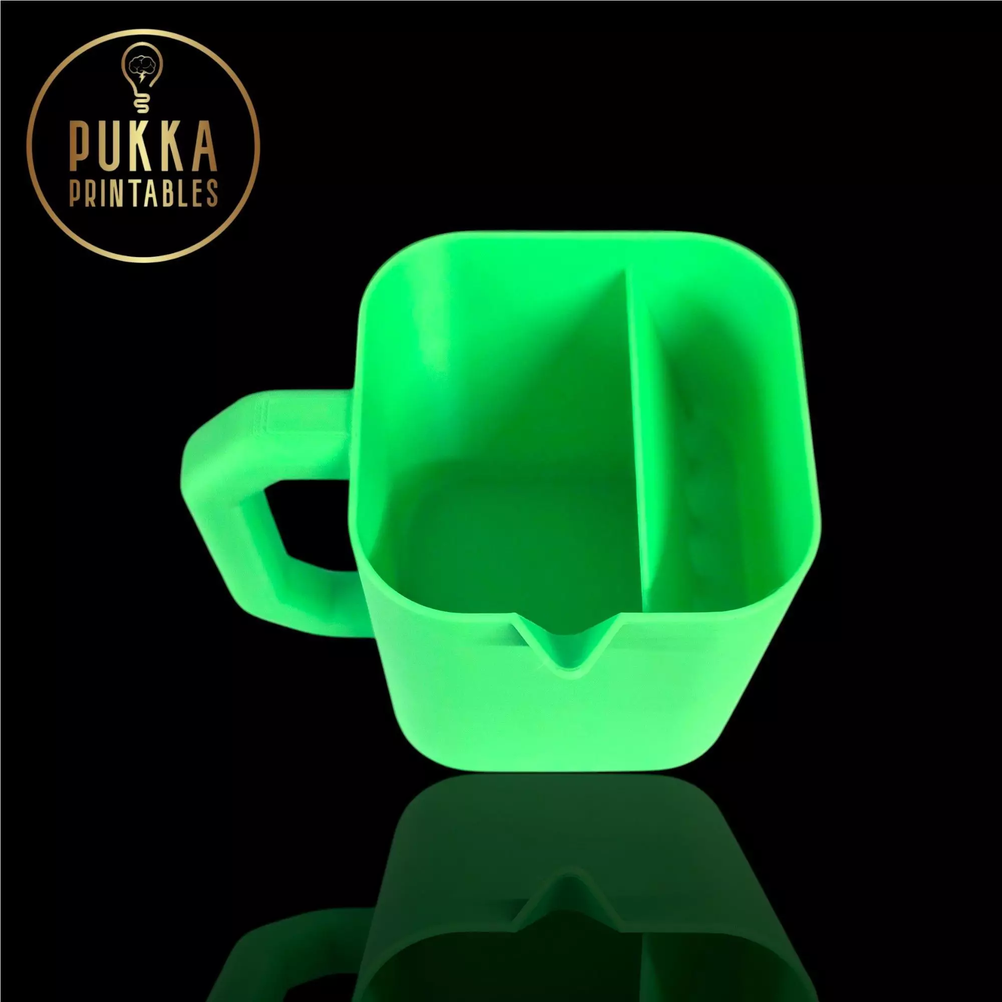 • Integrated brush rest with drainage holes to direct paint back into the reservoir• Snap-on lid for temporary closure and transport• Smooth pouring spout for controlled decanting• Practical design for common FDM 3D printing processes