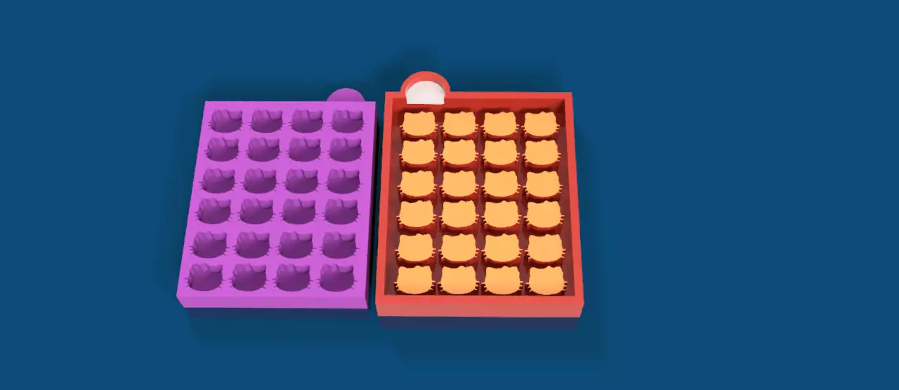 24-Cavity Hello Kitty Wax Melt Mold – Cute & EfficientThis 3D-printable mold allows you to create a silicone mold for making 30 Hello Kitty-shaped wax melts at once! Designed for efficient production and easy unmolding.