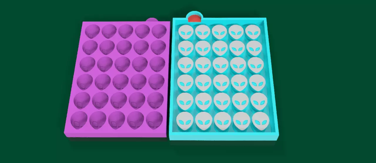 30-Cavity Alien Head Mold – Unique & EfficientThis 3D-printable mold lets you create a silicone mold that produces 30 alien head-shaped pieces at once! Designed for smooth unmolding and efficient production.