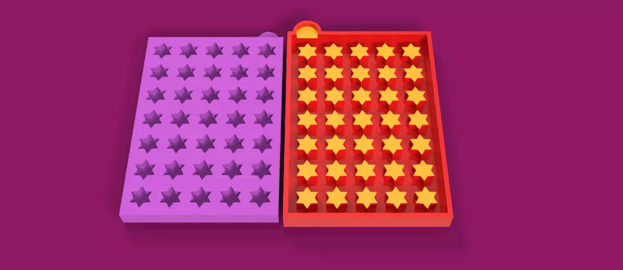 35-Cavity 6-Point Star Mold – Optimized for Silicone EfficiencyThis 3D-printable mold allows you to create a silicone mold that produces 35 star-shaped pieces at once! Designed for efficient production and easy unmolding. Mold & Product Details: