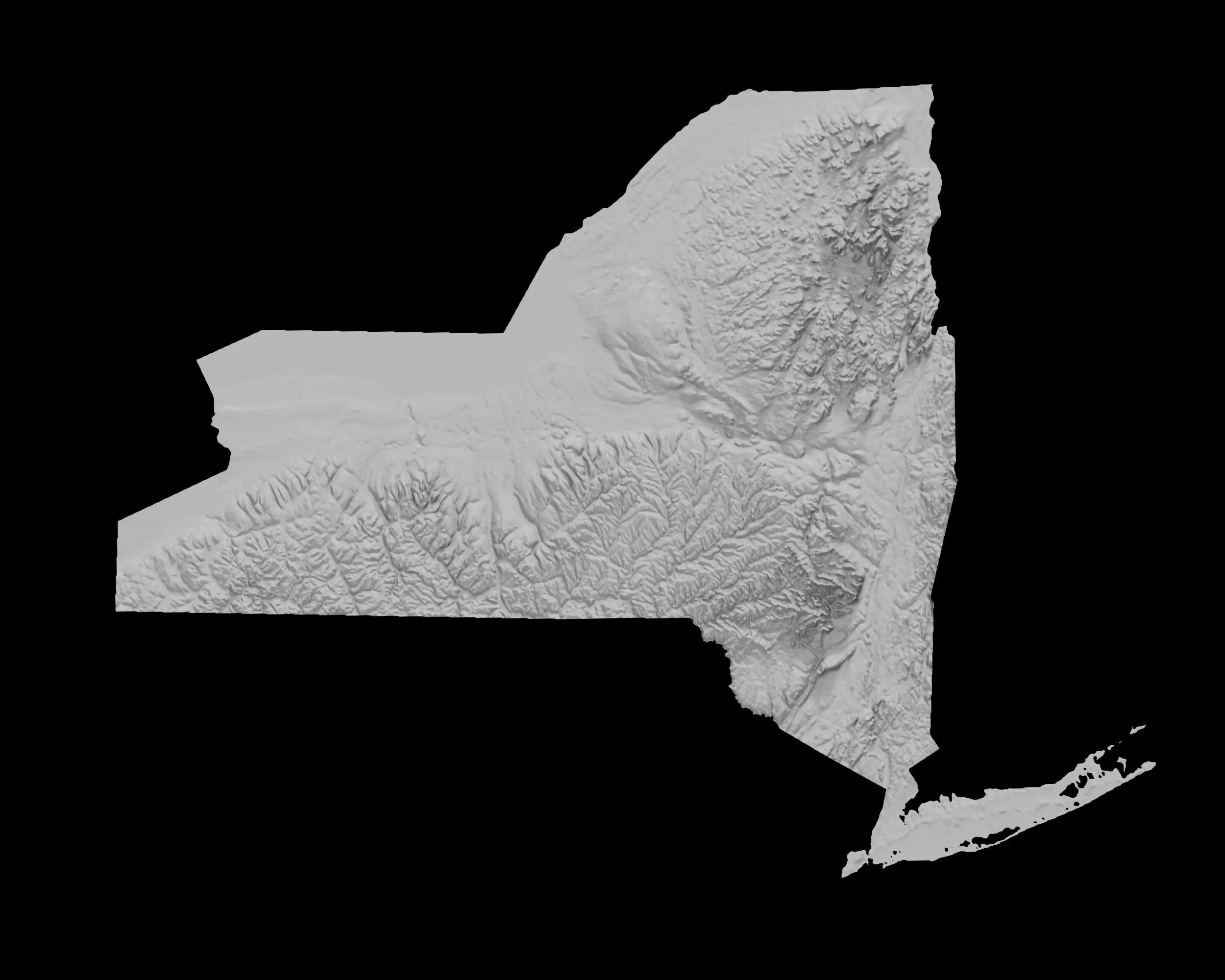 Crafted with meticulous attention to detail, this 3D model features plains, mountain ranges, and rivers, capturing the geography of the New York in stunning 3D detail.