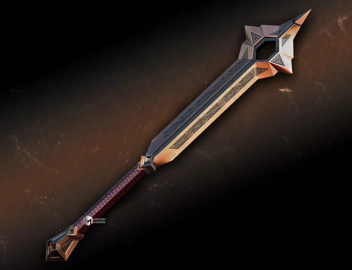 The 1:1 scale prop features an 8 mm thick dovel cutout , same as on the other sword designs for structural strength