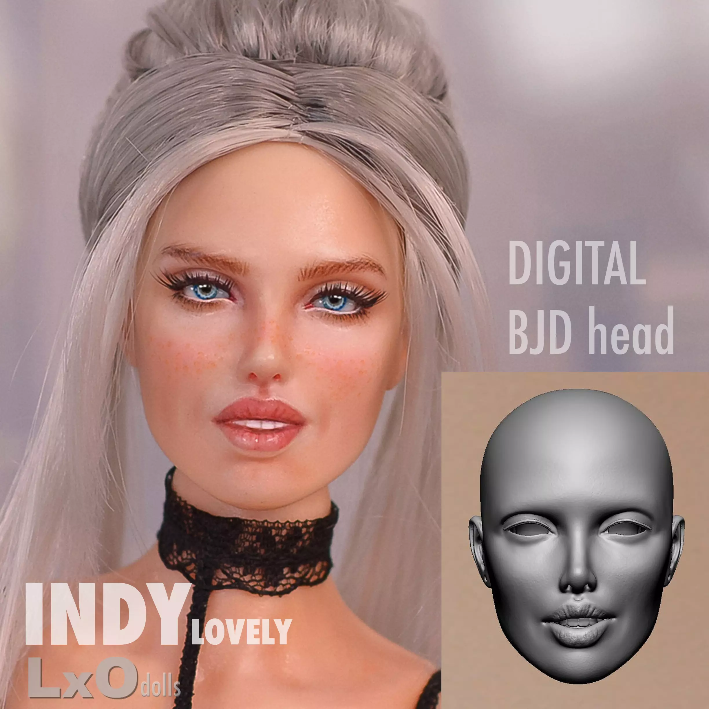 This digital product is a set of the faceplate and the back part for a female BJD doll in OBJ and STL formats.The printed faceplate needs to be attached to the back of the head with 5x2mm magnets.