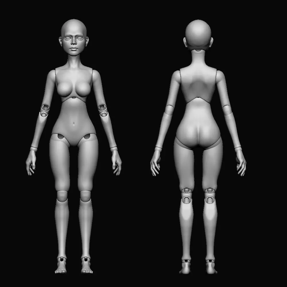 3D MODEL DESCRIPTIONA female BJD (Ball Jointed Doll) with 18 points of articulation.
