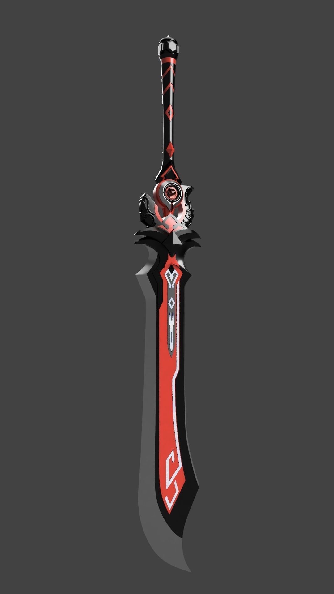 Model of a sword, ready for 3D printing. The sword is 165 centimeters long. At the base of the sword, a 20mm polypropylene water pipe is used. The pieces are adapted for printing on a 3D printer Creality Ender 3. The precious stone in the center of the guard has a cavity for illumination, as well as a threaded connection.