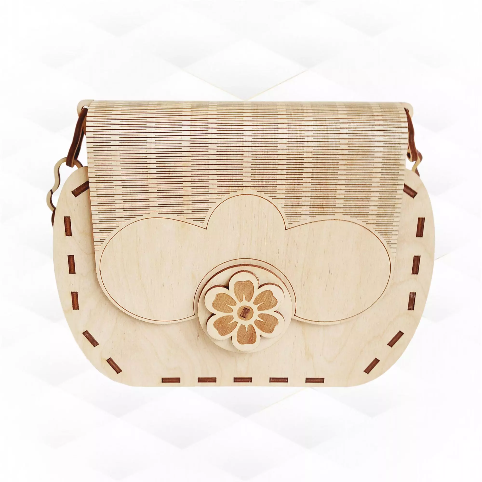 Files for cutting 3mm thick are included. The photographs show a design Bag Clutch made of 3 mm plywood with dimensions:Box 152x196x46mm or approximately 6x7.7x1.8inches.Largest part to cut: 301x196 mm (11.9x9.7 inches).