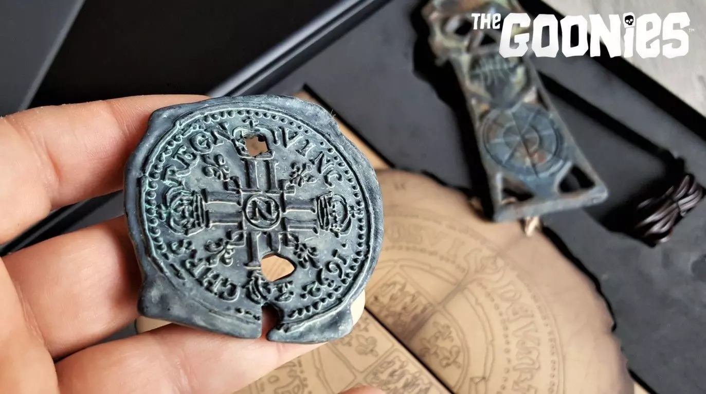 Anteriormente propiedad de Chester Copperpot, permaneció en las cavernas secretas debajo del Lighthouse Lounge durante casi cincuenta años. Lo descubre Mikey, quien lo toma del cadáver de Copperpot. Más tarde, en Moss Garden Wishing Well, los Goonies resuelven uno de los acertijos de Willy el tuerto; descubren una serie de piedras y usan el medallón para encajar en el conjunto correcto. Al girar en sentido antihorario, Mikey activa una trampa explosiva y casi mata a Data en el proceso.