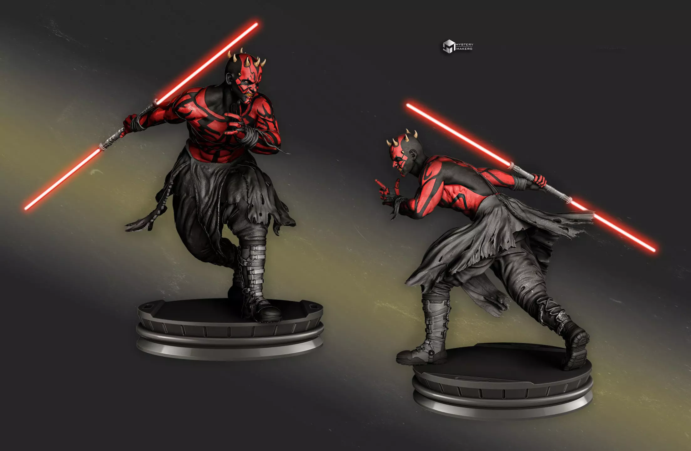 The idea was to imagine Darth Maul in a training ground situation :) As you can see, the statue is made in super high detail - it even has skin details and cloth details :D The original mesh if exported in full quality would be about 1 GB in size, ofc that would crash all slicers, so i had to reduce the mesh quality a bit to bring those numbers down and make it usable which it now is.