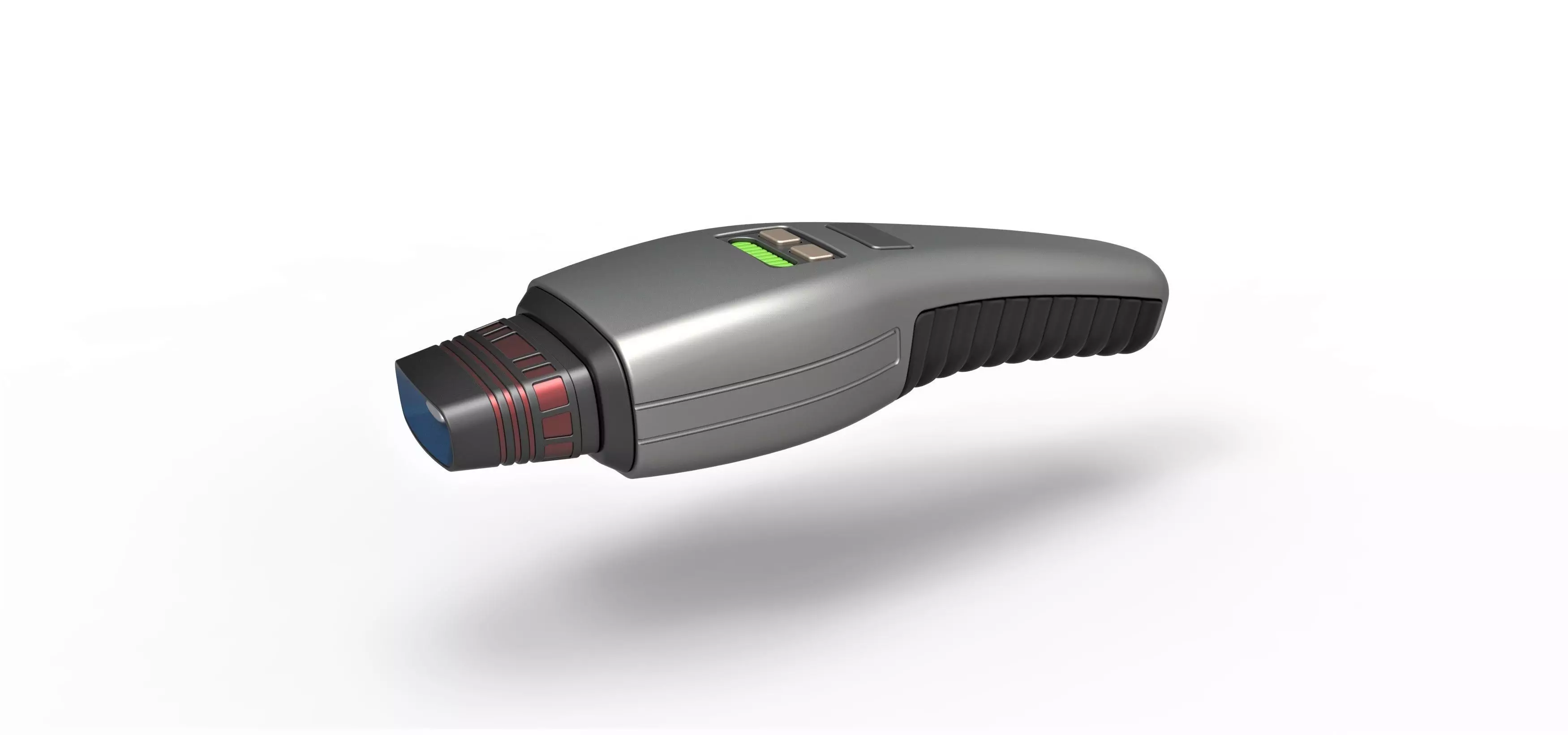 Model consists of parts: body, emitter, front part 1, front part 2, grip, indicator, left button, right button, top insert, trigger.