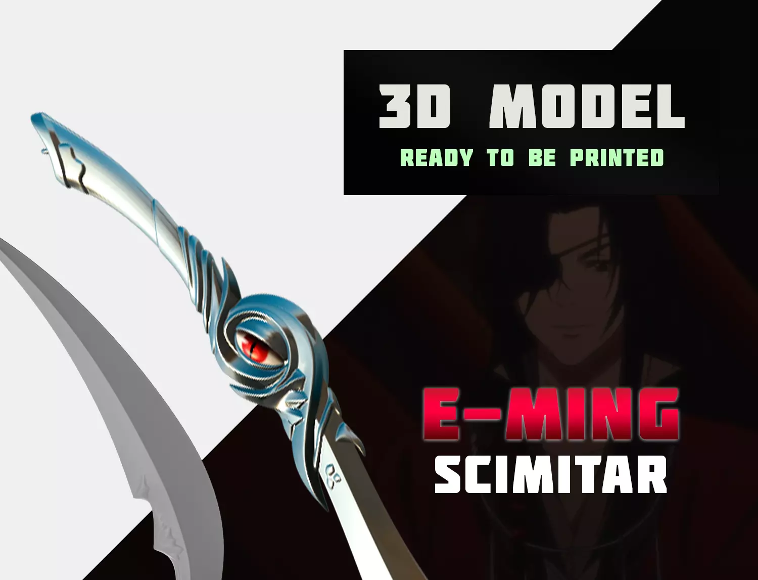 This is a set of high-quality 3D models. ALL FILES ARE READY FOR 3D PRINTING! Set contains a model of each part of the scimitar individually and a general 3D model of the scimitar. Models for personal use only!E-Ming (scimitar of Hua Cheng ) from Tian Guan Cifu (Heaven Official's Blessing)