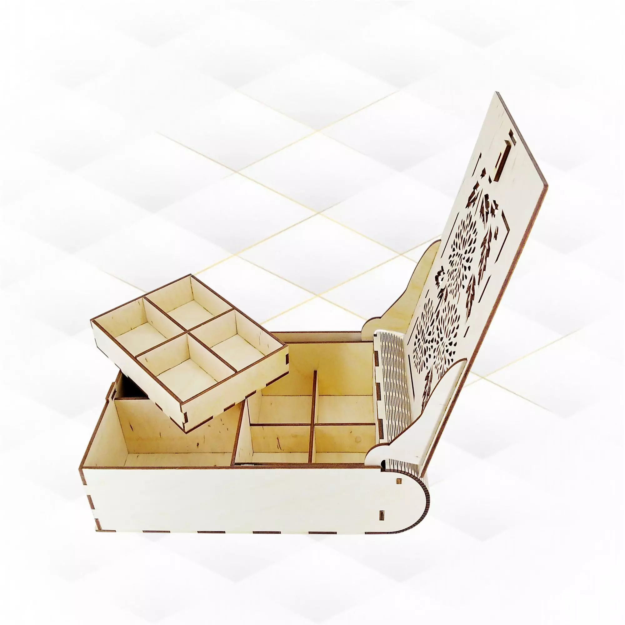 Gift jewelry box svg dxf design laser cutting. Ready laser cut files. Digital cut files. Engraving files. Glowforge project template. Laser cut plan. Original, unique product design will help you create a stunning gift or product for your store. Universal product! It can be made from plywood (as in the photo), cardboard or other material. Additionally, painting in your favorite colors, you will receive an exclusive gift, well, just a gorgeous thing!