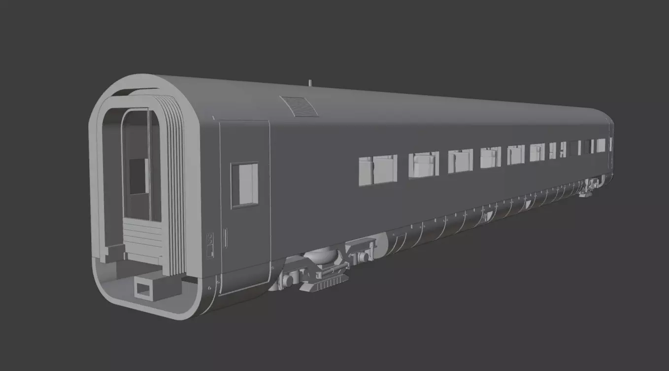 Druckbares Modell im Maßstab 1:87 (H0) des Reisezugwagens Apmz 116.0 (Metropolitan/ICE). Zusätzlich zu den druckbaren Teilen werden noch Kupplungen, Federn und Achsen (24,4x10,4) benötigt. Um das Risiko des Abbrechens von filigranen Teilen zu minimieren, wird empfohlen, einen Anteil von flexiblem Resin zu verwenden. Besonders bei Teilen, die dynamischen Beanspruchungen ausgesetzt sind (NEM-Kupplungsschacht) sollte dies getan werden. Zu hohe Belichtungszeiten können dazu führen, dass einige Teile nicht richtig zusammenpassen. Die Fenster sollten mit transparentem Resin gedruckt werden.