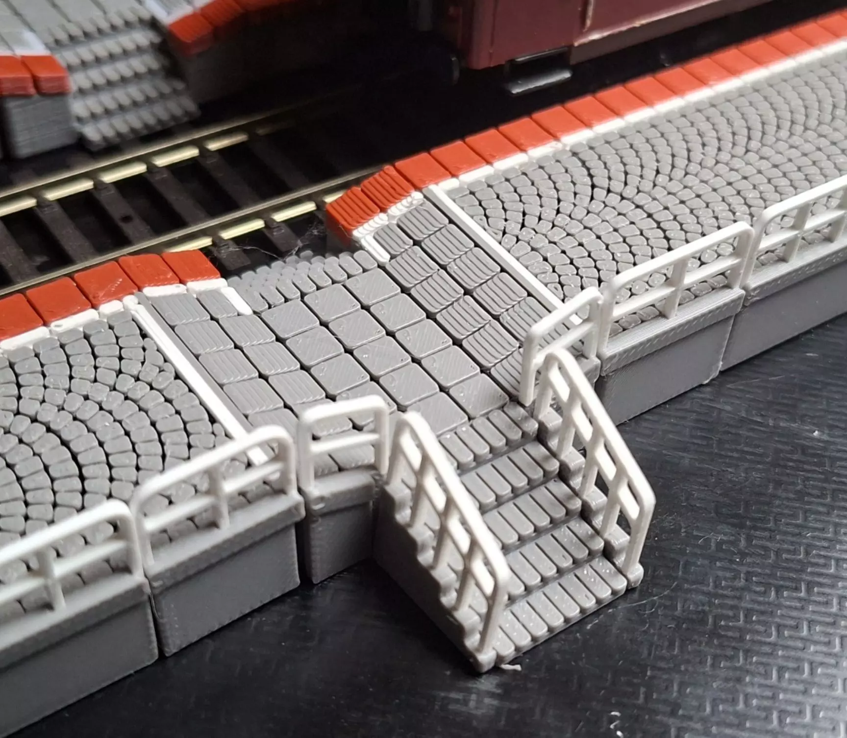 Note: the elements are not symmetrical, if you want to print a symmetrical platform on the other side of the tracks, you need to print the modules in mirror image (in the slicer)