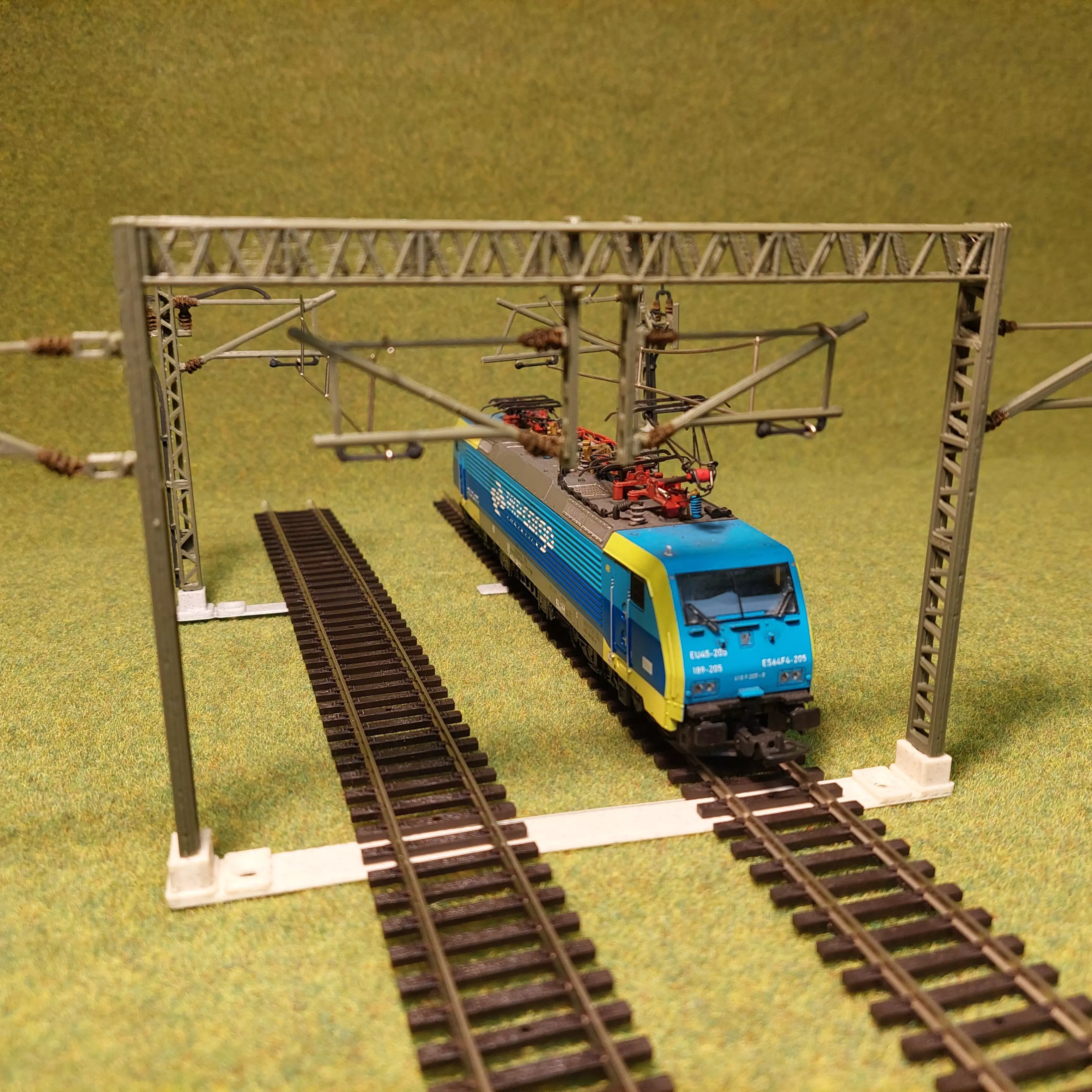 Note: I fully realize that the hanger elements are too thick, but this technology (FDM) does not allow printing strong elements that are smaller. The assumption was that commercially available catenary wires could be stably mounted on these gate. Since I've made the individual elements available separately, you can try printing them in resin, but I wanted to create a complete collection of traction poles that can be printed by owners of FDM printers.This is difficult print. You need to set the retraction parameters correctly so that there are as few threads as possible, and also dry the filament well before printing. Despite this, you will still have to cut out the threads left inside the print with a scalpel.