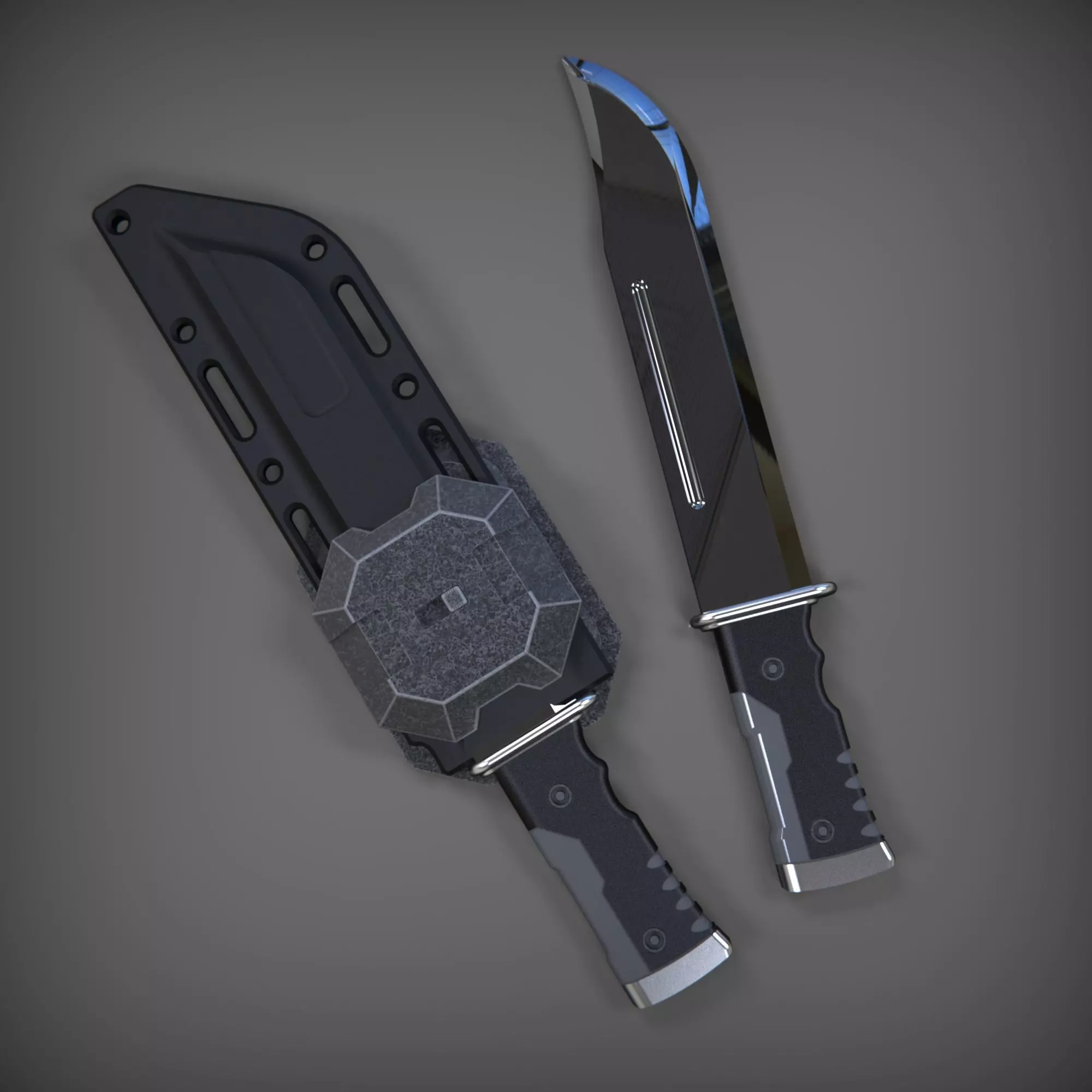 - Updated the sheath model to have higher clearances inside and split into 2 pieces that can be fixed with screws/glue. This allows for a thin piece of 1mm foam or microfiber cloth to be placed inside to prevent the blade paint to be scratched. Some sizing might be required depending on the printer. (Higher size difference between the sheath and the blade = the higher the clearance)