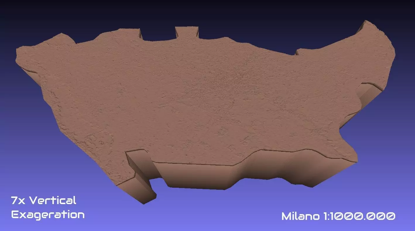 The 3D map of Italian Milano Province 1:1000.000 scaled