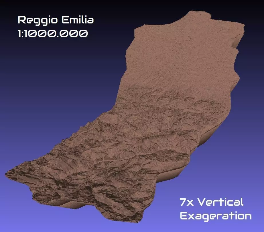The 3D map of Italian Reggio Emilia Province 1:1000.000 scaled