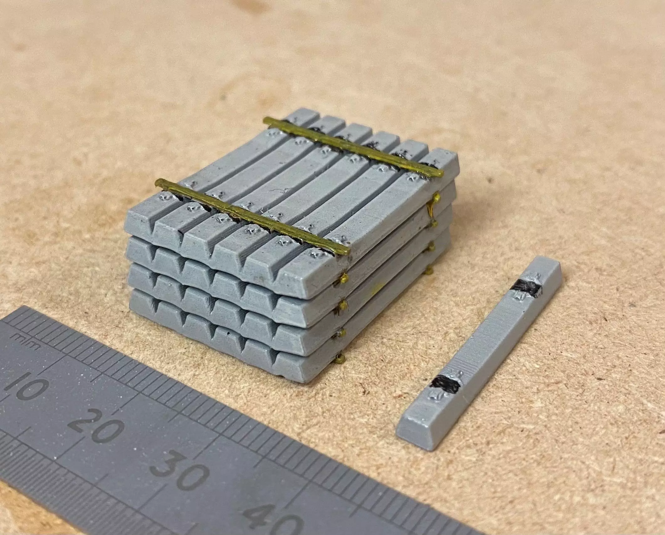 Concrete Sleepers stacked that are ideal for train loads or left next to the railwayDesigns come in various formations (8x2, 7x2, 5x2, 6x4, 5x2, and 4x5), single concrete sleeper is also included.This design is to add scenery to a layout and not for laying track for trains to run on.