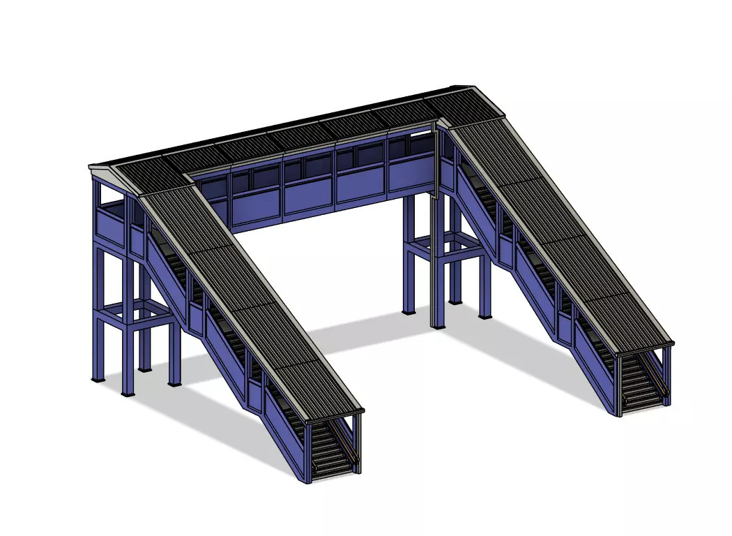 The central span is 160mm but I have done an add-on design with other lengths (96mm, 128mm, 192mm and 224mm) https://www.cgtrader.com/3d-print-models/hobby-diy/hobby-accessories/model-railway-modern-foot-bridge-add-on-extras.I have also added some central steps so you can span more than 2 plaforms and these can be found at the following add-on https://www.cgtrader.com/3d-print-models/hobby-diy/hobby-accessories/model-railway-modern-foot-bridge-central-steps-add-onThe steps are 224mm wide (with 160mm centre), 200mm Long and 120mm high approximately, the clearance height is 74mm