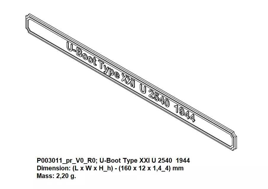 Product Code: P003011_pr_V0_R0; Product Name: Nameplate Type R2 160 x 12 x 1,4_4 - U-Boot Type XXI U 2540 1944