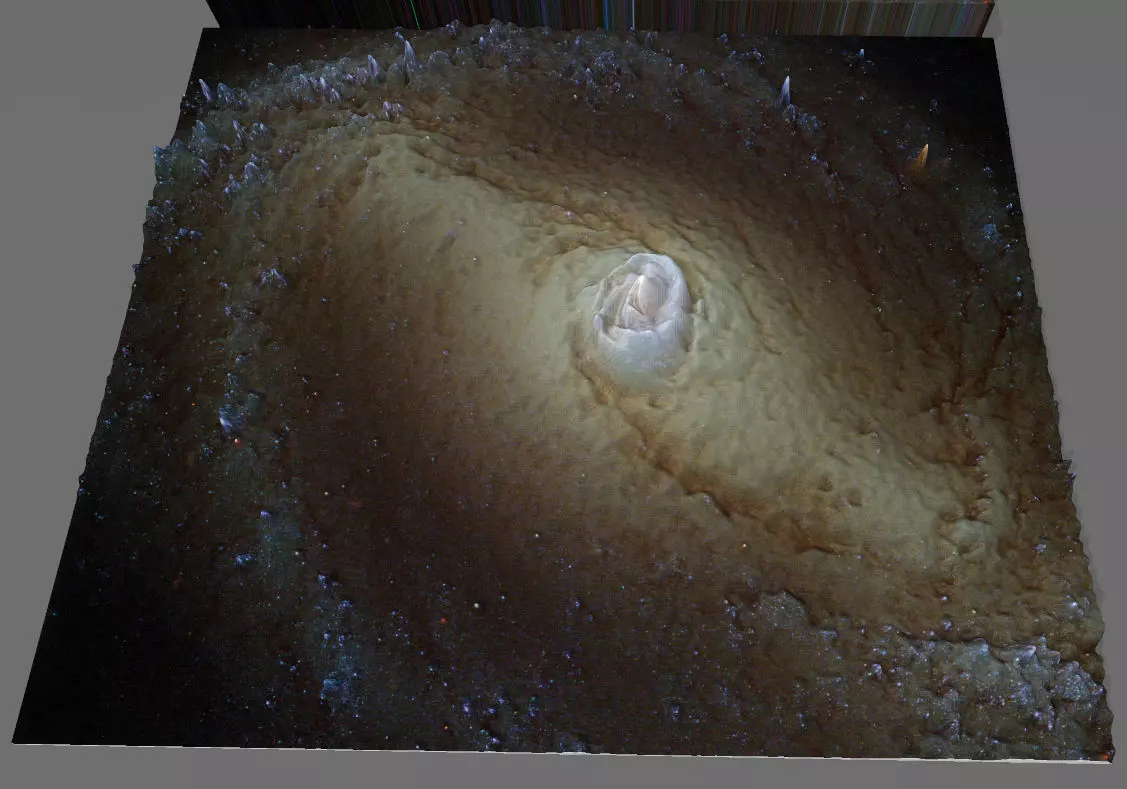 Huge Galaxy, whose light traveled thousand years for the our Spaces Telescope to record its photons! Where the material becomes denser, as a result of physical processes, it will be brighter and warmer, like as the sun! Somehow, the thickening matter creates deeper and deeper holes in space-time. Based on this, I created the negative gravity map of the image with the help of software, as gravity distorts a deep pit in space-time, the texture rises on the model, thus creating gravity mountains!
