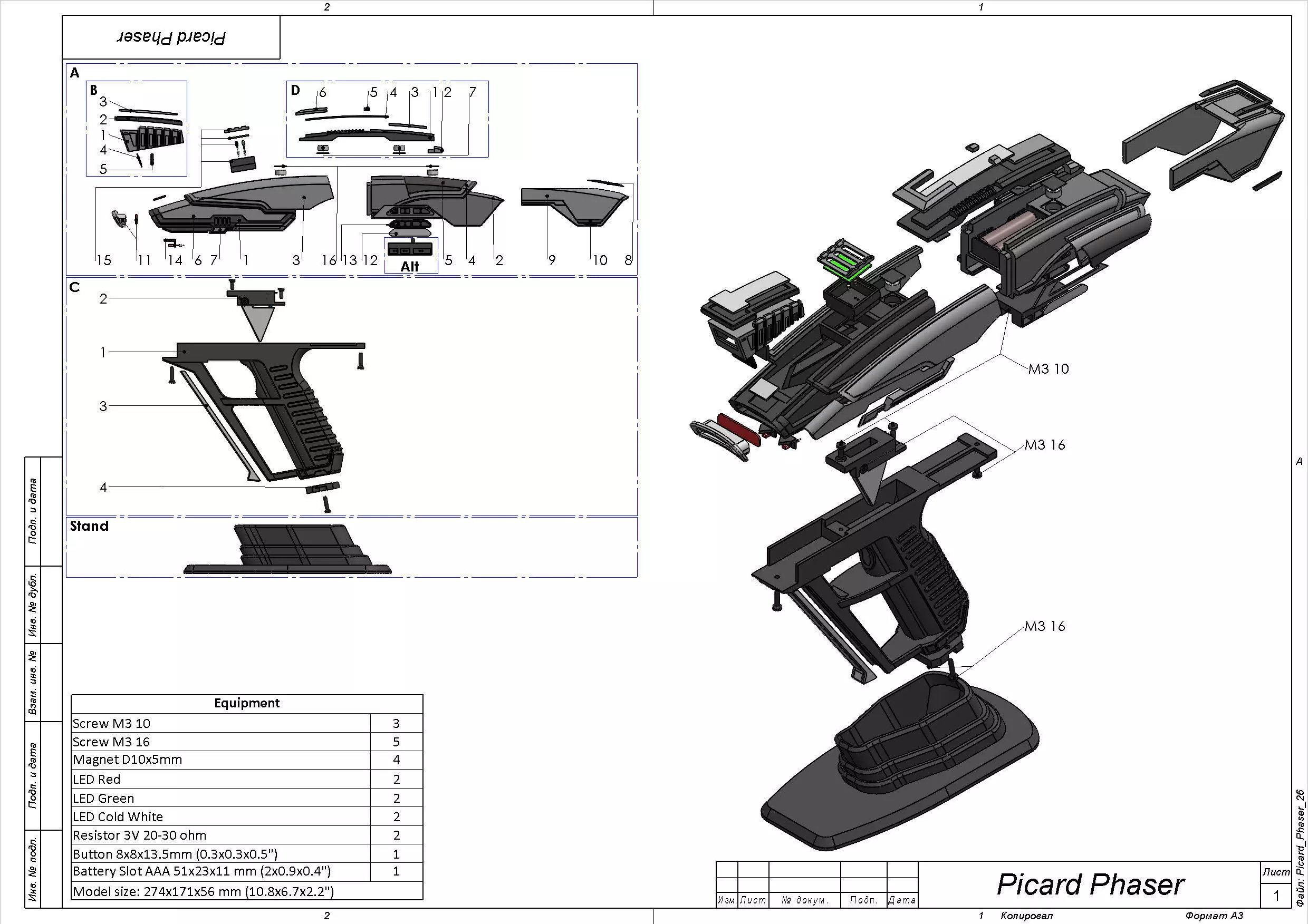 Hi! We glad introduce you 3d model - STL + CAD bundle (STEP as CAD file) - to modify and print your own Picard Phaser from the Star Trek Picard.