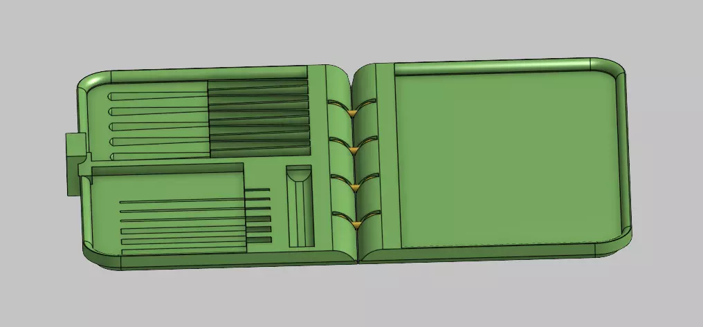 The unique aspect of this tray is that it has a set of ball joints that act as hinges in the center so that it is able to fold onto itself to create a carrying case to safely trasport preroll smokes.Press the hinges in on one side to lock the box closed. Release the hinges to open.