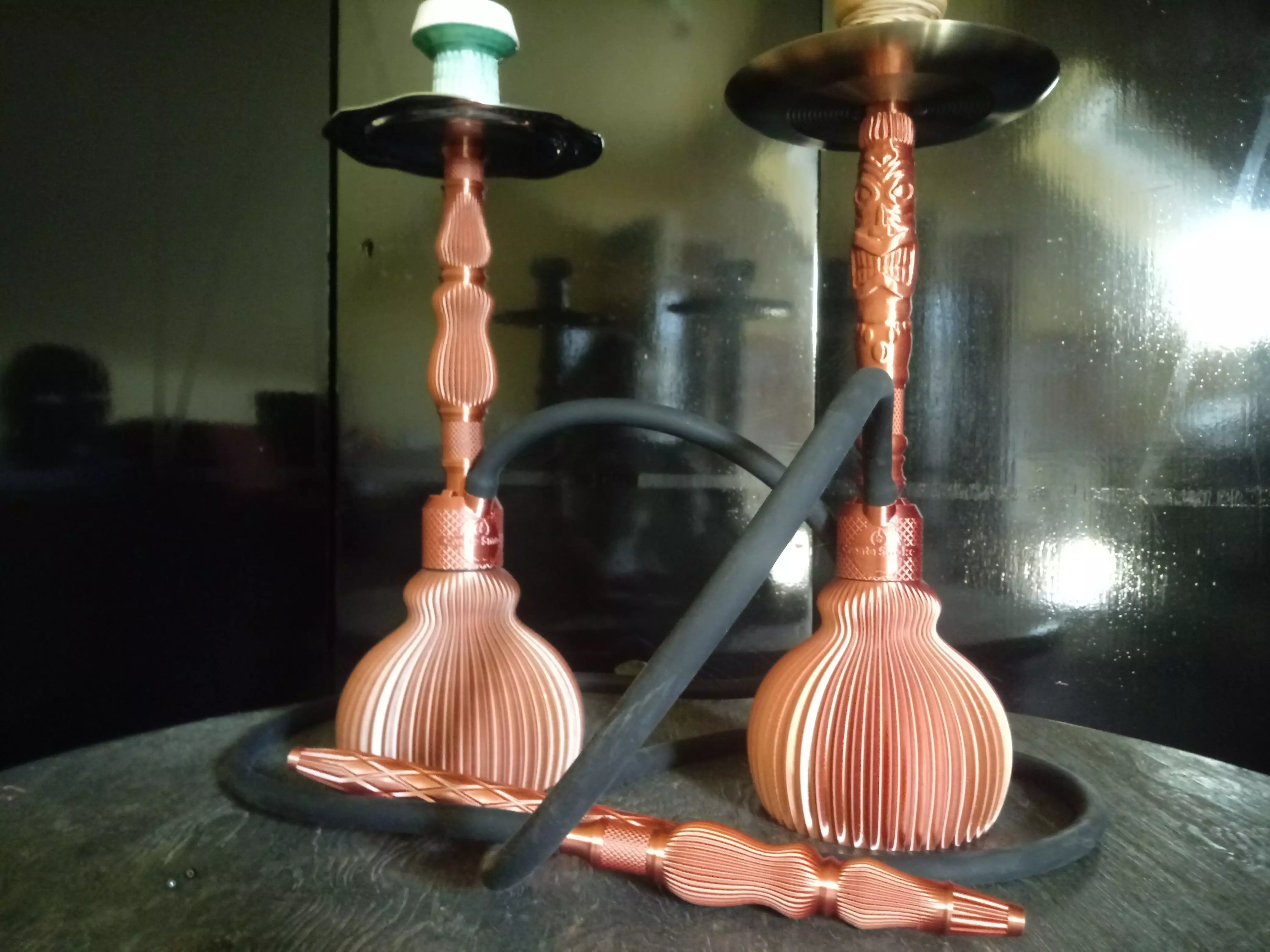 i was working on a Hookah since 3 years and created lots of different designs. This is my Riffle hookah based on a spiral bowl. You have to put a bullet like a glass sphere (7mm) in the base while printing. You can also testing a printed bullet if your printer is really accurately in printing round figures. I am using a stainless steel rod (14mm diameter) as a dip tupe. My rod goes through the hole pillar and ends in the water o the bowl. You can also try to use a printed dip tupe. At the top of the column of smoke there is a gap to put a magnetic ring on for holding a metal plate. It is designed for a magnetic ring in the demension 27x21x3[mm]. As you can see on the photos you will get a hookah with 2 pillars. There is the Joker pillar and the spiral pillar coming together with this offer. Print what ever you want to. Both pillars fits to the Base based on a bayonette lock.