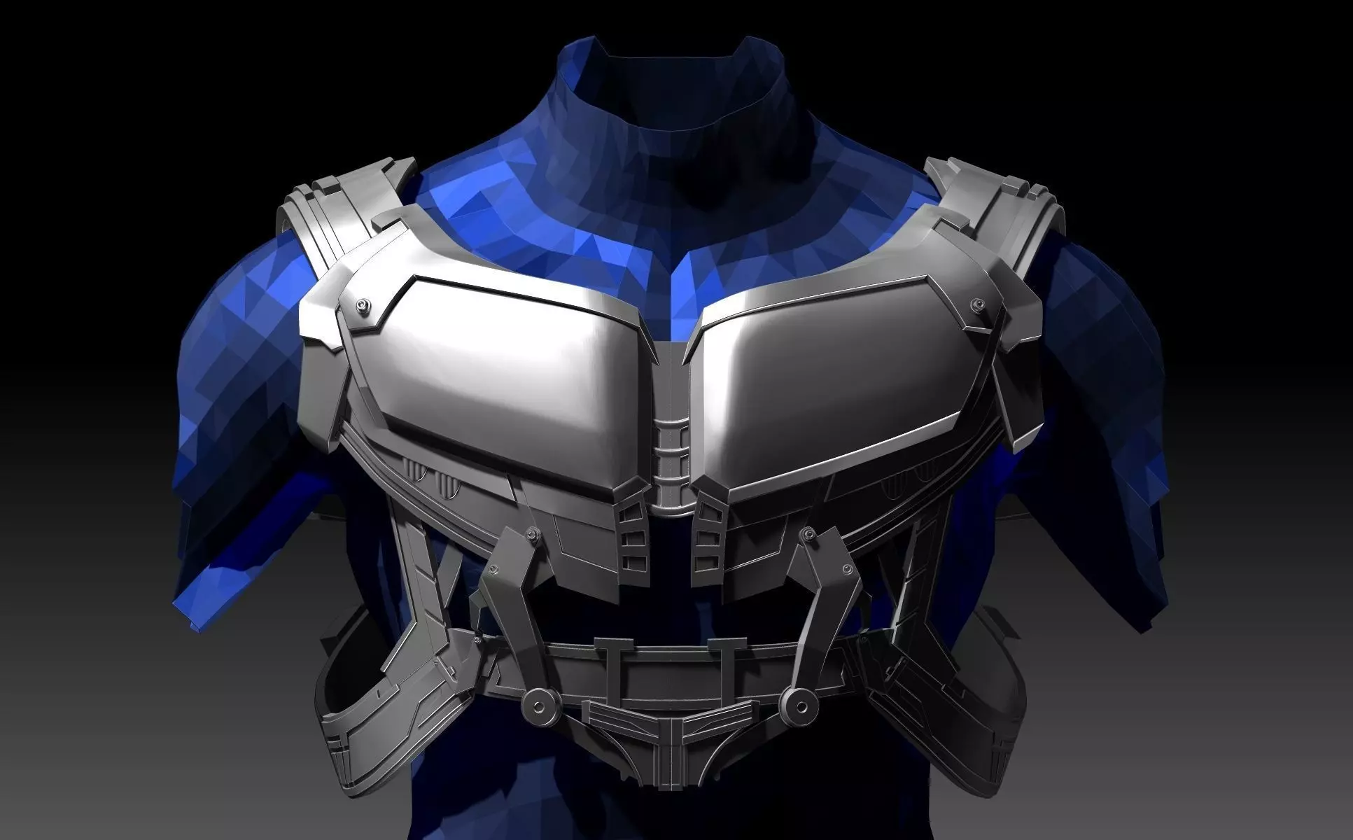 The model has three parts (in STL format): front left, front right (mirrored left part) and back, each of which is divided into several separate parts. If you need, I can change a size or format of this complex model, make it fitted to one particular body (by photos) or split it up any way you want.