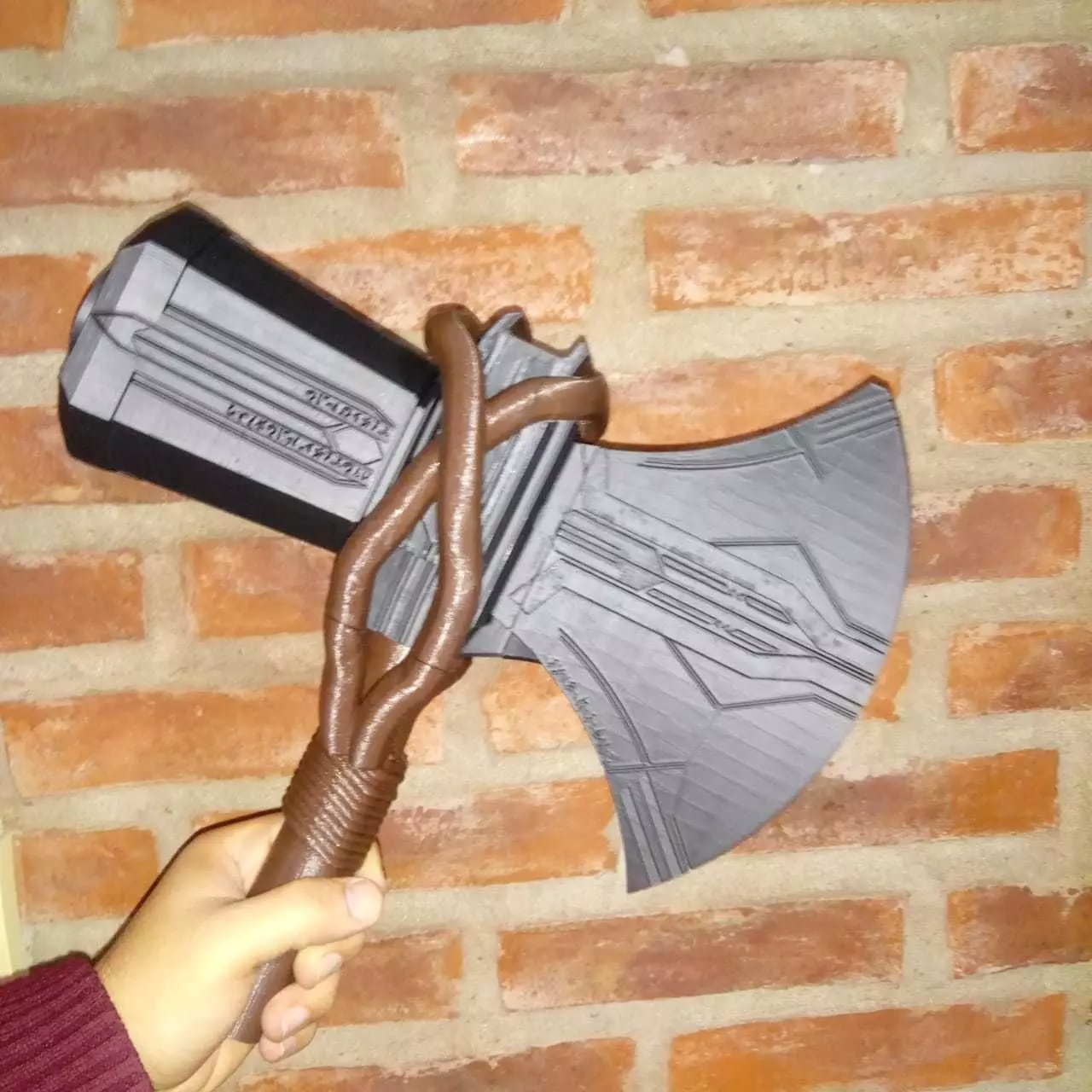 New thor weapon from infinity war, forged in Nidavellir1,20 M long o 47" a huge hammer/axe, ideal for cosplay, or exhibition.Ready to print