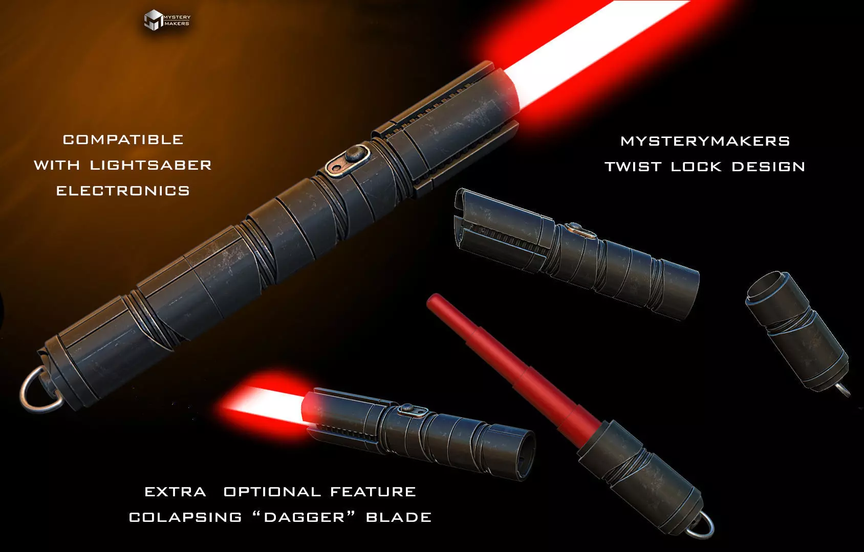 functional lightsaber:with exposed and hidden screw optioncollapsing dagger blade optiontwist lock mechanism