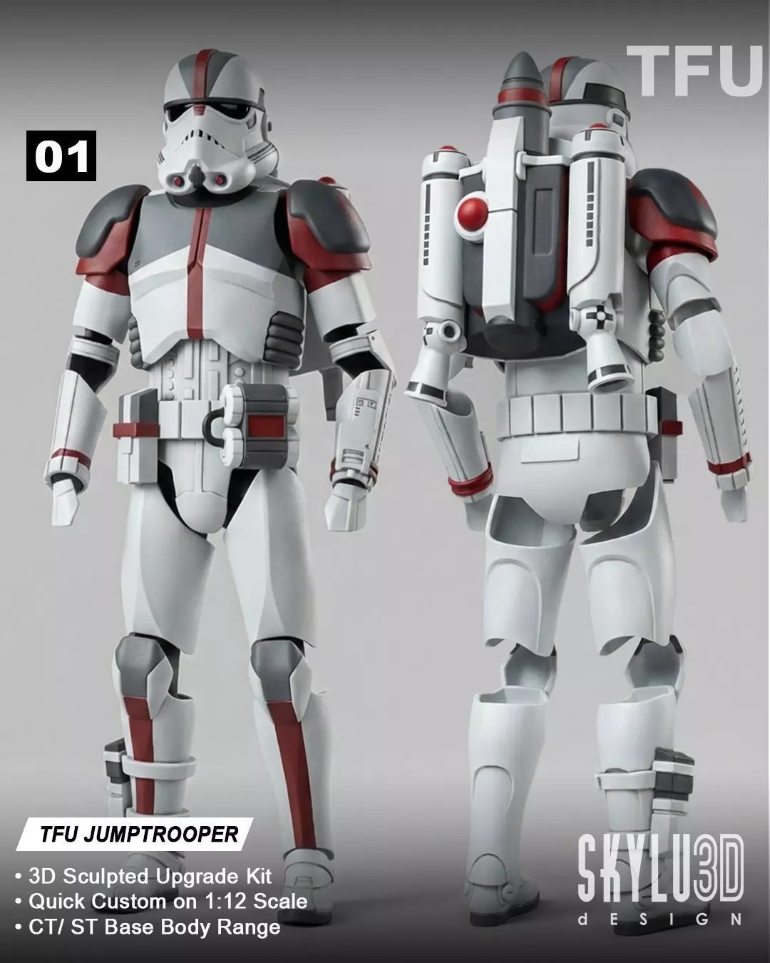 Recreate the classic PS2 era Jumptrooper from The Force Unleashed. A complete 1/12 scale armor kit featuring the unique jetpack and helmet design.