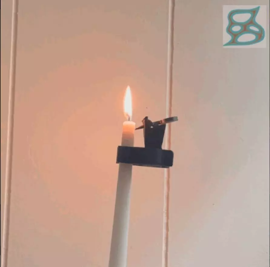 Automatic Candle ExtinguisherPlace the candle snuffer spoon onto the clamp as seen in the photos with the concave side facing down.Next, place a rubber band stretched across the two posts above the spoon. I like to use those tiny elastic bands used for small braids, and as a man with two daughters they are not in short supply in my household. Other rubber bands may be used as well as long as they are of an appropriate size to fit comfortably on the clamp posts.Pull back the spoon so that it's under tension from the rubber band and hold it back. Use the clamp to attach the Candle Extinguisher to your candle and stab the pointed end of the spoon into the wax of the candle approximately half a centimeter below the point at which you would like the candle to be extinguished and light your candle.As the candle burns down to the point at which you've stabbed the extinguisher into the wax, the wax will soften and release the tension of the spoon, which swings around at a high rate of speed and extinguishes the flame.I've used this extinguisher many times, and it has functioned successfully every time. I have had zero problems with the PLA melting or burning, and zero problems with embers being thrown from the candle. With that being said, the safe use of this device is solely the responsibility of the user, and proper fire safety should be a priority. Do not leave a burning candle unattended.