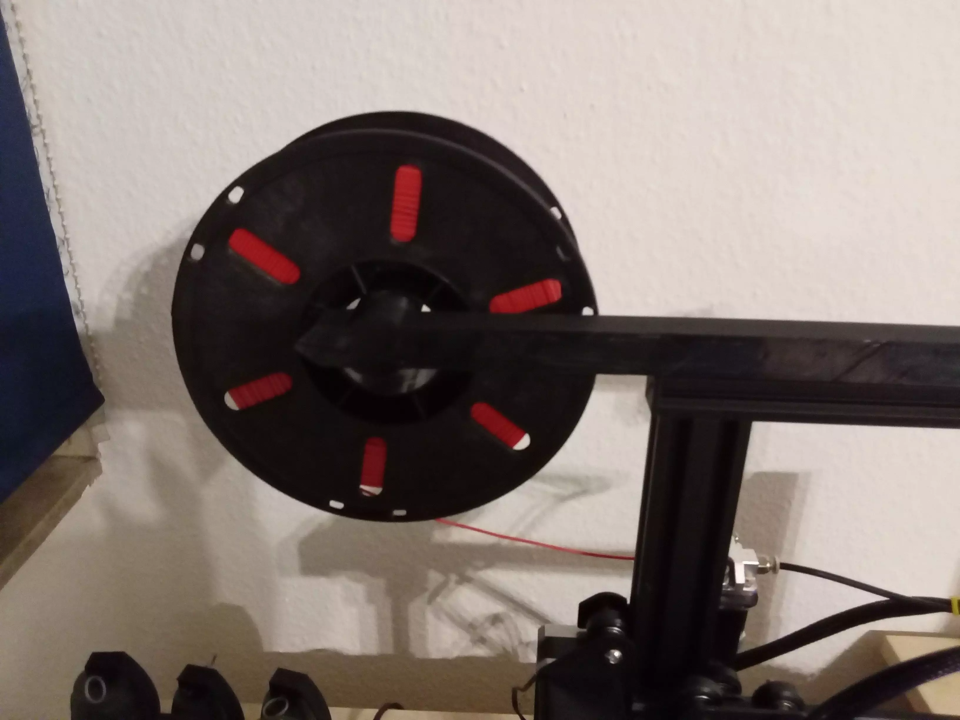Filament Rollenhalter für Ender 3. Durch den relativ geraden Weg des Filamentes von der Spule in den Extruder werden Extrusionsprobleme stark reduziert. Das ganze System ist jetzt leichtgängiger, die Extrusion deutlich präziser definiert.Ich habe das große Teil auf einem Ender 5 mit einem Bauraum von 350 mm X 350 mm diagonal gedruckt. Die Kleinteile können alle auf dem Ender 3 selber gedruckt werden.Die Schrauben und Muttern habe ich aus Standard PLA gedruckt, damit die Gewinde sauber laufen. Der ganze Rest wurde mit Carbon PLA gedruckt. Denkbar ist auch ein Druck mit PETG Carbon reinforced.