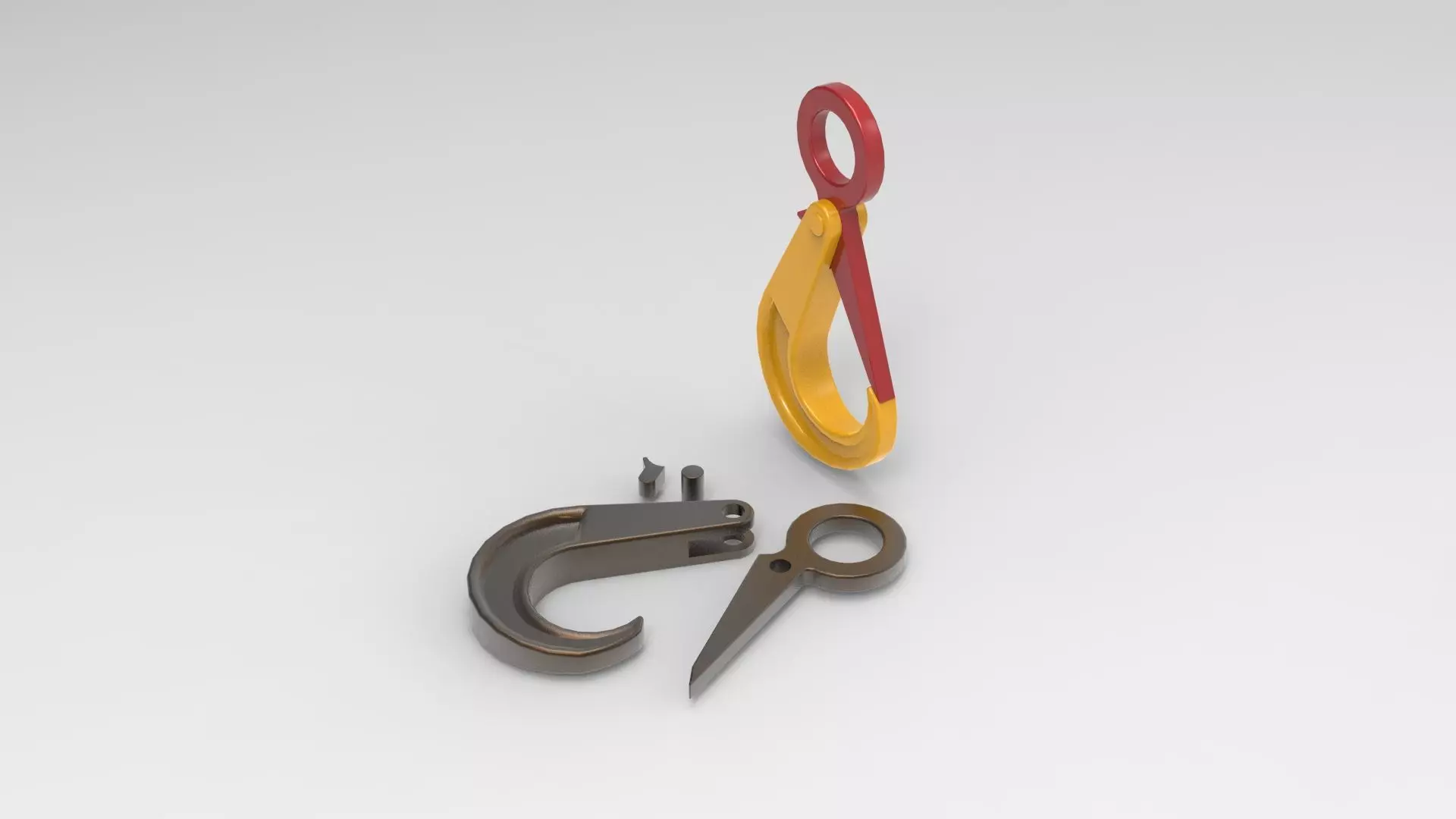 3D MODEL DESCRIPTIONA locking hook crane, a specialized type of lifting equipment, incorporates a locking mechanism within its hook to enhance safety and stability during material handling operations. This innovative feature ensures that the load remains securely attached to the hook, even if power or control is momentarily lost, minimizing the risk of accidents or injuries. Locking hook cranes are particularly advantageous for lifting and transporting valuable or fragile cargo, where the extra security provided by the locking mechanism is crucial. This technology has significantly improved the precision and reliability of lifting operations in various industries, offering peace of mind while boosting efficiency and safety in the workplace.