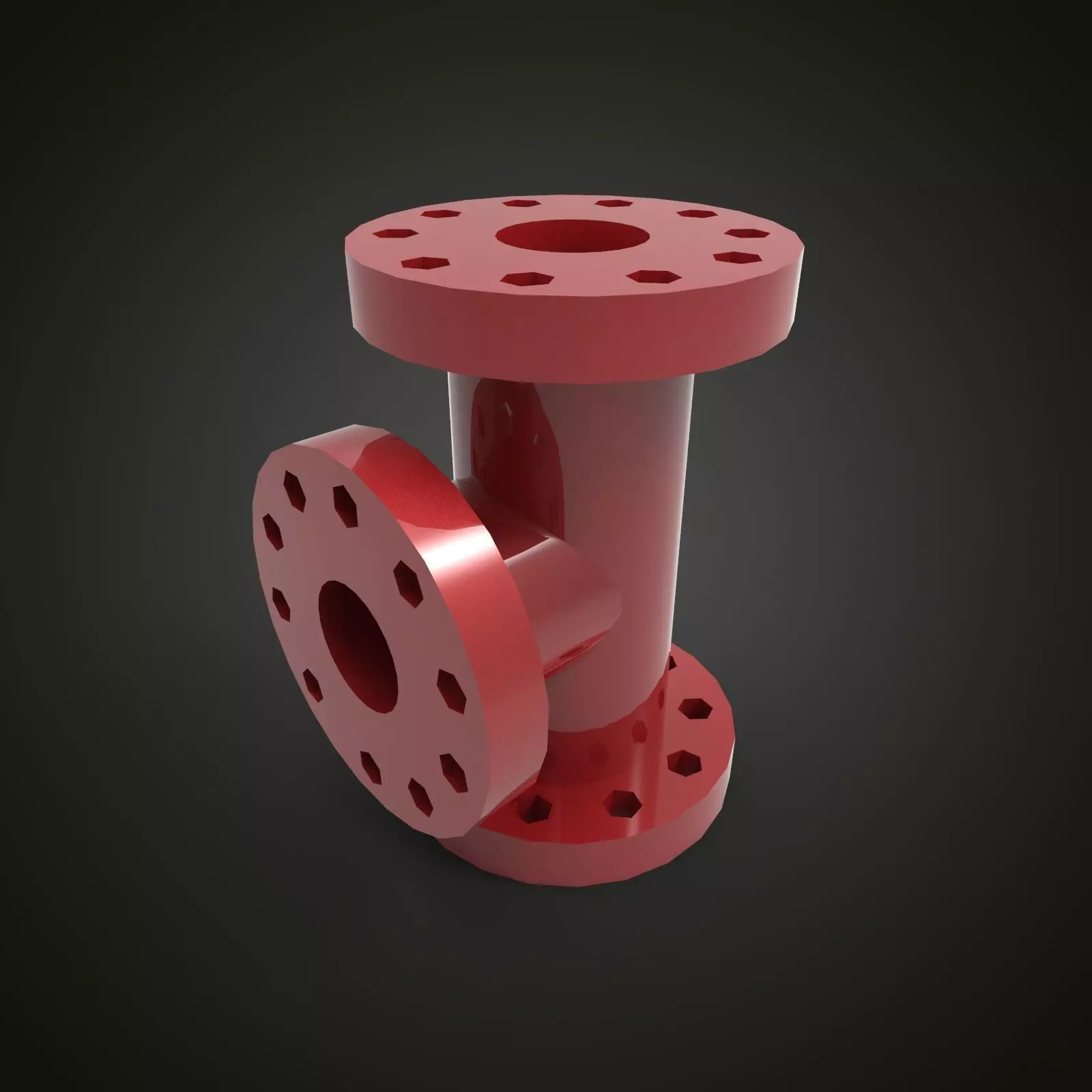 The 3D design of a tee pipe with flanges features a T-shaped pipe fitting with flanged ends on all three outlets, allowing for secure and leak-proof bolted connections within a piping system. This configuration enables fluid flow to split or merge between three different directions while maintaining structural integrity and ease of assembly. The flanges are designed to industry standards for compatibility with various valves, pipes, or equipment. Commonly used in industrial applications such as chemical plants, oil and gas, and water distribution systems, the design supports efficient installation, maintenance, and system expansion.