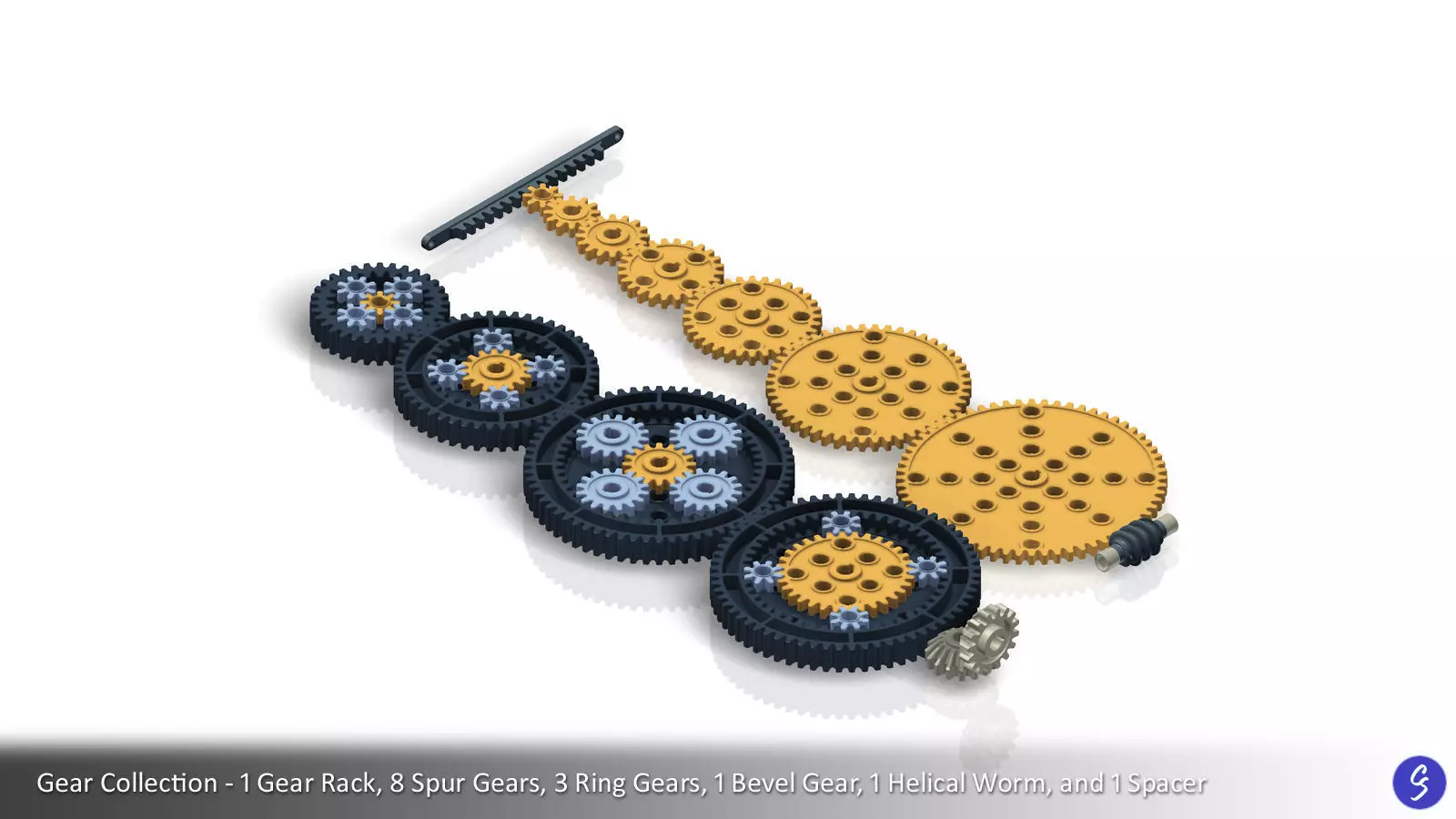 All gear tooth profiles are precisely modeled with accurate arc-based geometry and a small amount of backlash to ensure proper engagement. Gears can be used as drive gears (rotationally locked to shaft) or idle gears (free spinning about shaft).