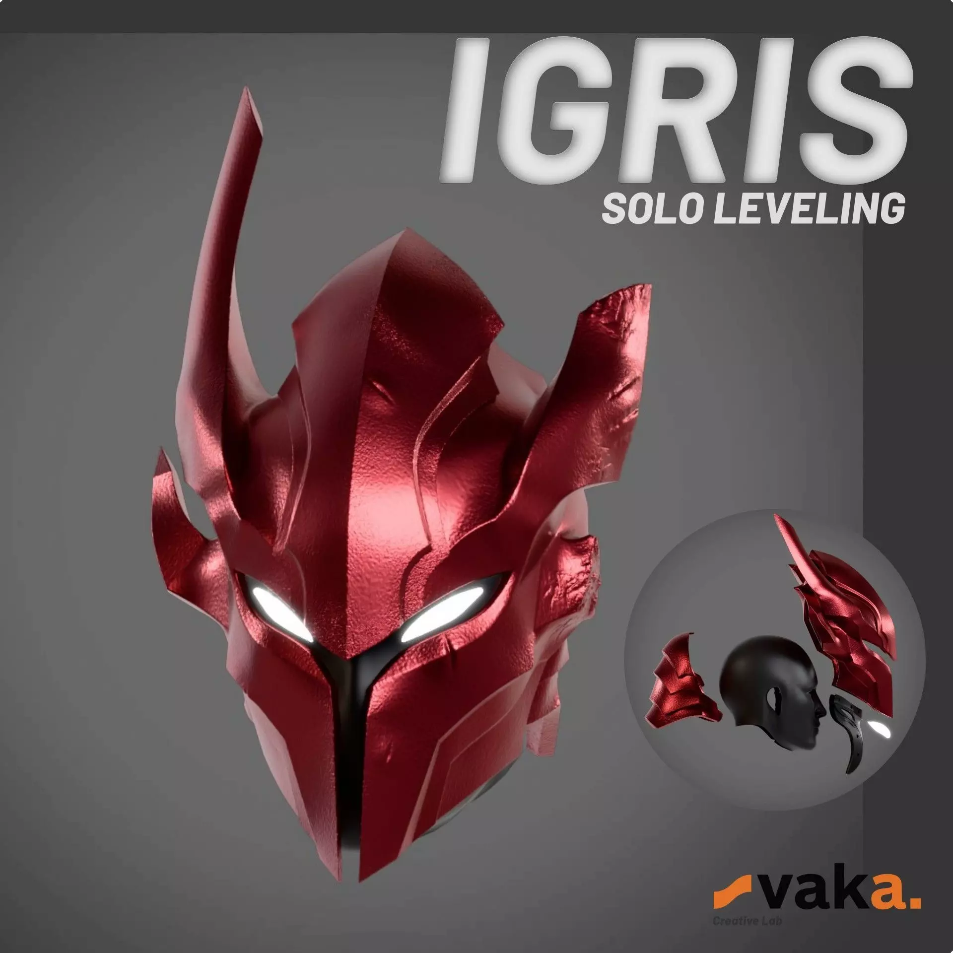 3D printable helmet inspired by the Igris Red Commander from the anime Solo Leveling. Designed for both cosplay and display purposes, the helmet is split into several parts for easy printing and assembly. The visor/face section is detachable and can be attached using 8x2mm magnets, allowing for dynamic posing and convenient usage during cosplay events.