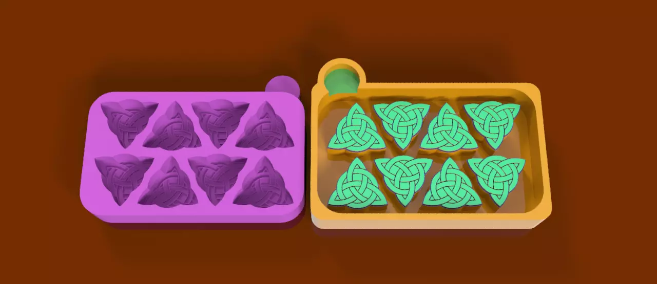 Features & Benefits: Intricate Celtic Design – Inspired by the timeless Triquetra symbol Optimized Unmolding – Draft angles ensure smooth release of silicone molds Multipurpose Use – Ideal for wax melts, chocolates, soaps, resin, and more Food-Safe Silicone Compatible – Can be used for edible creations like chocolates and fondant