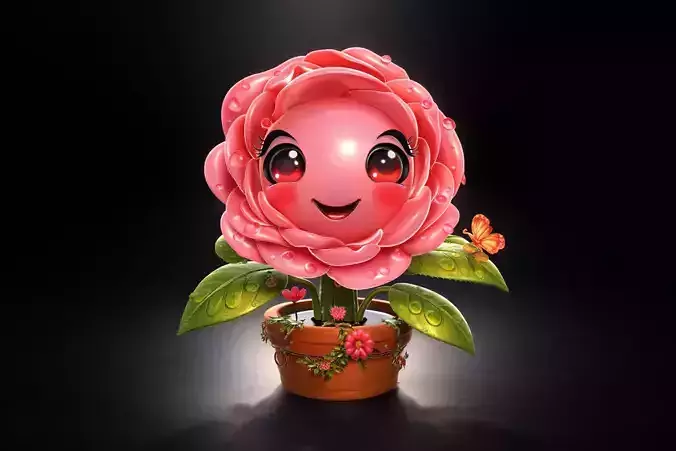Celebrate love and joy this Saint Valentine with this adorable smiling rose planter, designed as a charming 3D printed decorative piece. This cute flower character features a glossy rose bloom with expressive eyes, soft blush cheeks, detailed petals with dew drops, vibrant green leaves, and a lovely butterfly accent that adds a romantic and whimsical touch. Planted in a decorative pot adorned with floral details, it makes a heartwarming gift for Valentine’s Day, anniversaries, birthdays, or simply to brighten someone’s space.