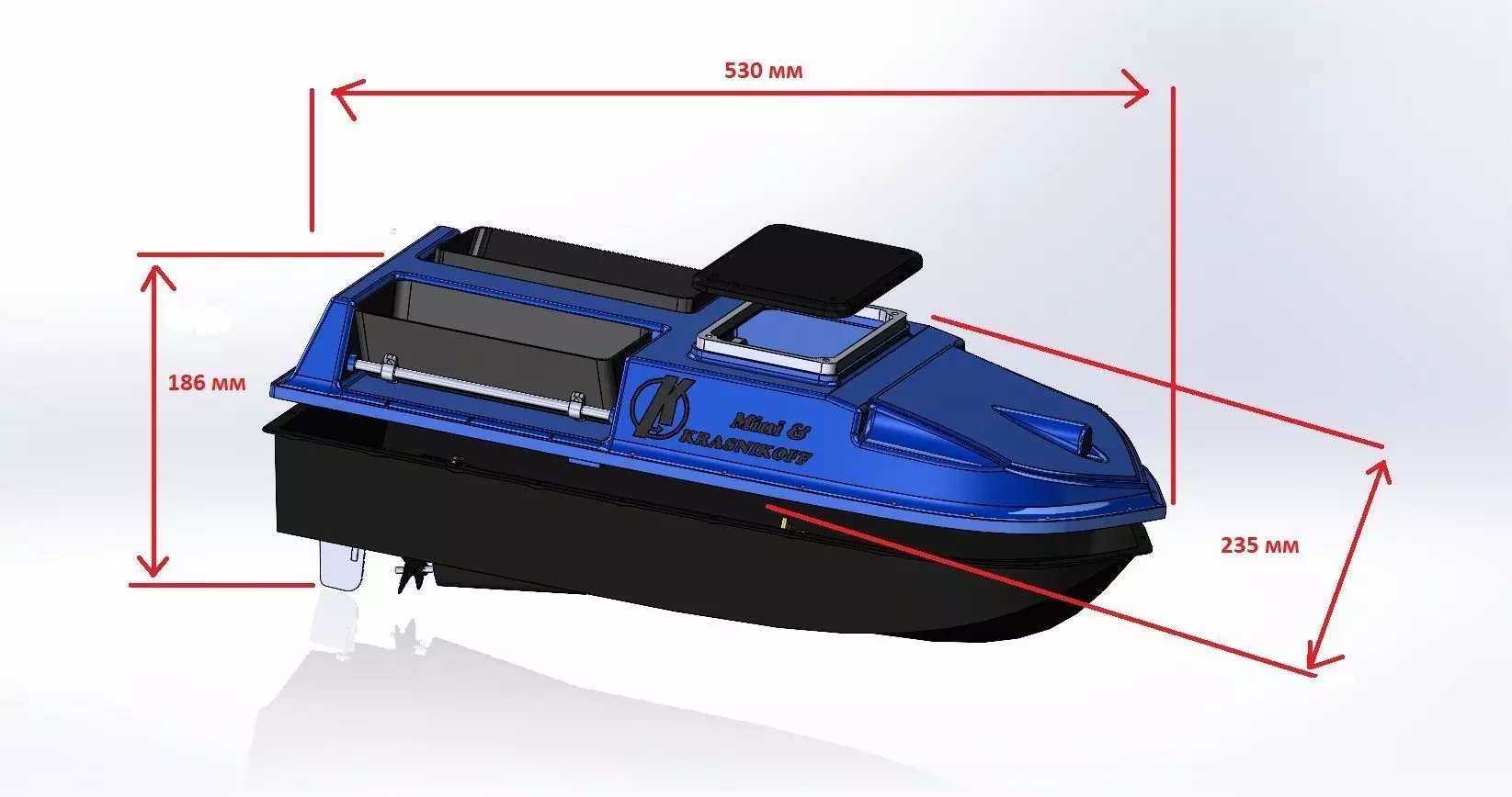 Это уменьшенная версия карпового кораблика с двумя бункерами, который теперь можно напечатать на 3D-принтере с площадью печати 220x220 мм. В слайсере кораблик нужно разрезать по оси Z.