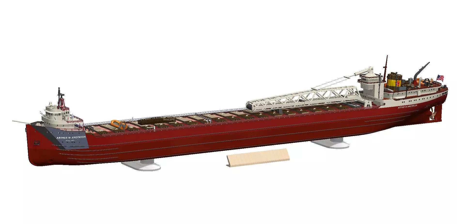 This large-scale 3D printable model represents the Arthur M. Anderson, designed as a highly detailed and modular interpretation of a classic Great Lakes bulk carrier. With an overall length of approximately 1.5 meters, the model is conceived as a serious, long-term build aimed at experienced modelers who enjoy complex assemblies and large-format projects. The structure is fully modular, allowing the vessel to be built in manageable sections while preserving accurate proportions and a strong visual presence once assembled. When completed, the model can exceed 200 individual parts, making it a demanding but deeply rewarding project for builders seeking something well beyond a casual print.