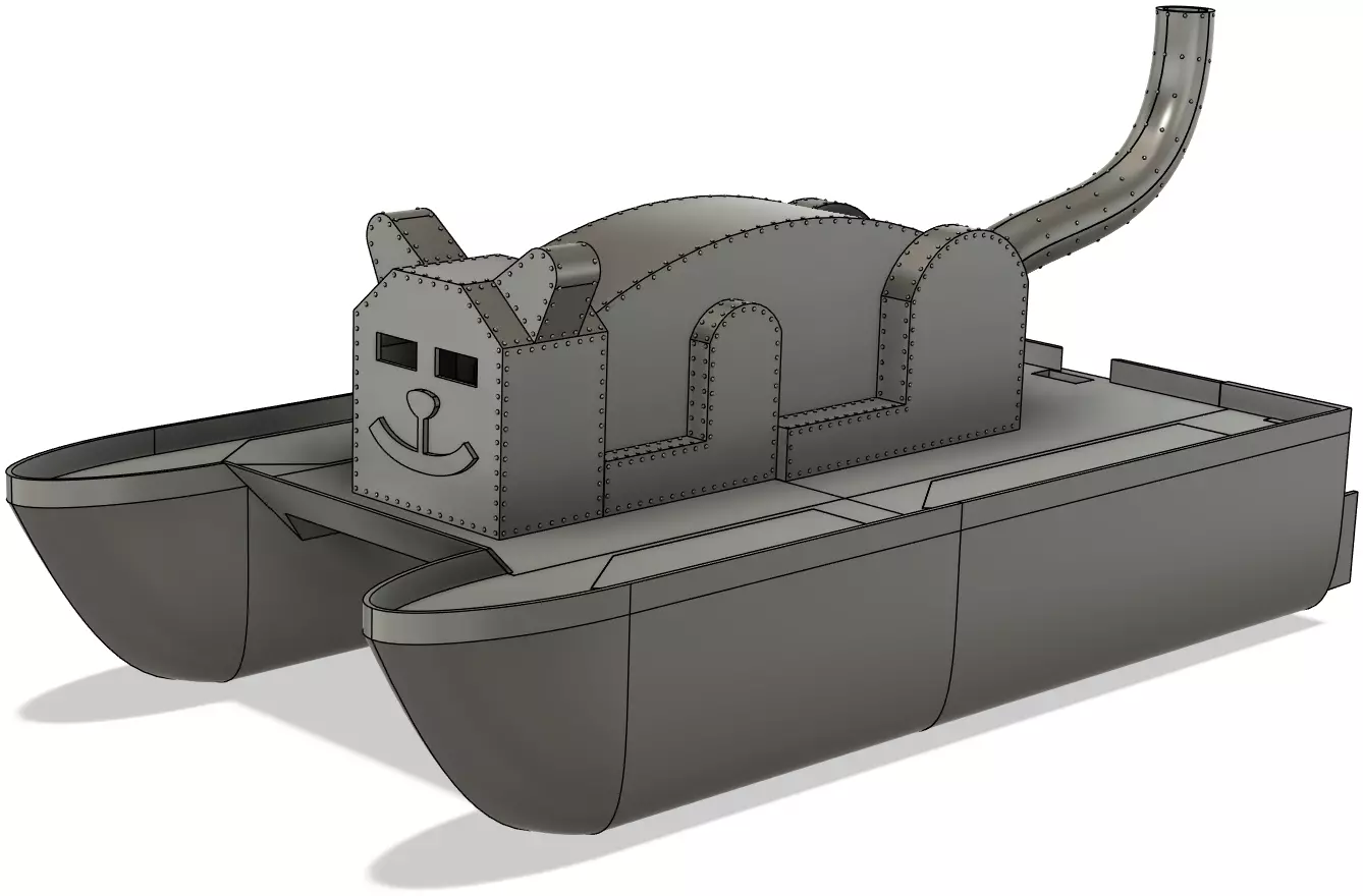 This model was designed at the request of my daughter who asked for a “cat ship” to be crewed entirely by felines. This is a completely custom design that I initially designed with a single hull. After realizing that I was missing the opportunity for a floating dad joke, I corrected my egregious error and redesigned the model to a twin hull design.