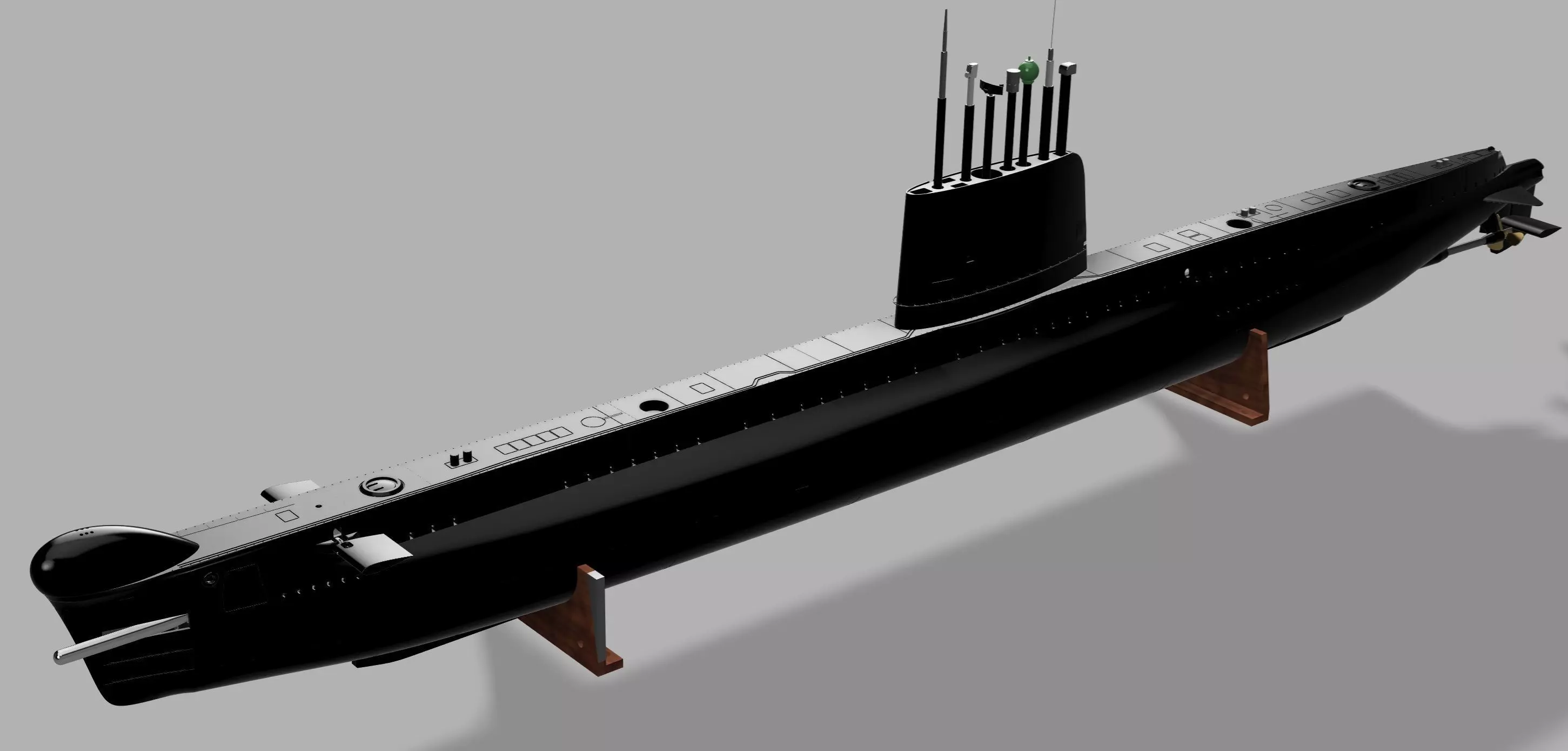 Scale Detail: Includes accurate rivet patterns (where applicable), casing vents, rudder assemblies, and the distinctive sonar bow.