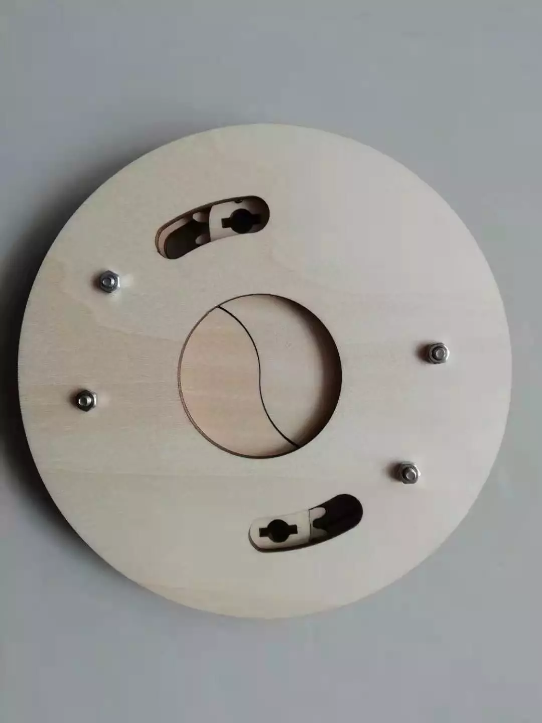 It is a mechanical iris. There are 2 leaves. Parts are designed for laser cut, but you can 3d print the parts too. DXF and STL files are included in the attachment. The outer diameter is 130mm, center hole’s diameter is 43mm, and total thickness is 12mm.DXF files are for laser cutting, and the thickness is 3 mm. Try to make the gap as small as possible when laser cutting.STL files are for 3d printing. Suggest using resin material when printing.