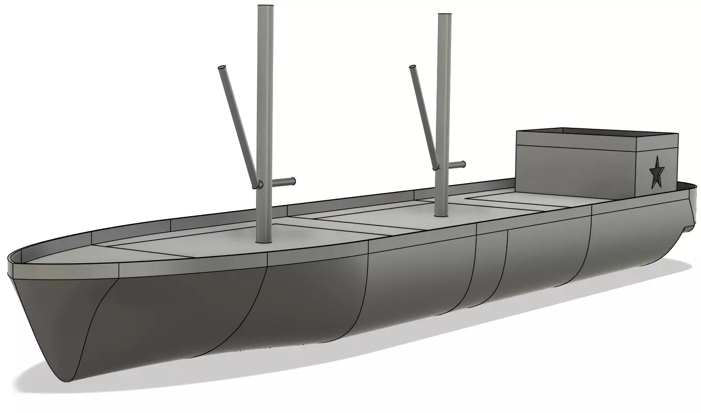 This model is a simple design I created for my RC boat club’s annual Christmas light parade. I wanted something with a lot of deck area for decorations and lights, and was also simple to construct. It's based loosely on coastal freighters, but is not to any scale as it wasn't made from drawings. I made it specifically for my printer, so you will need a large print bed (longest hull part is 300mm long.) I do not intend on redesigning this print for a smaller printer, but still wanted to post the files for any interested in building their own. No resin printing was used for this build.