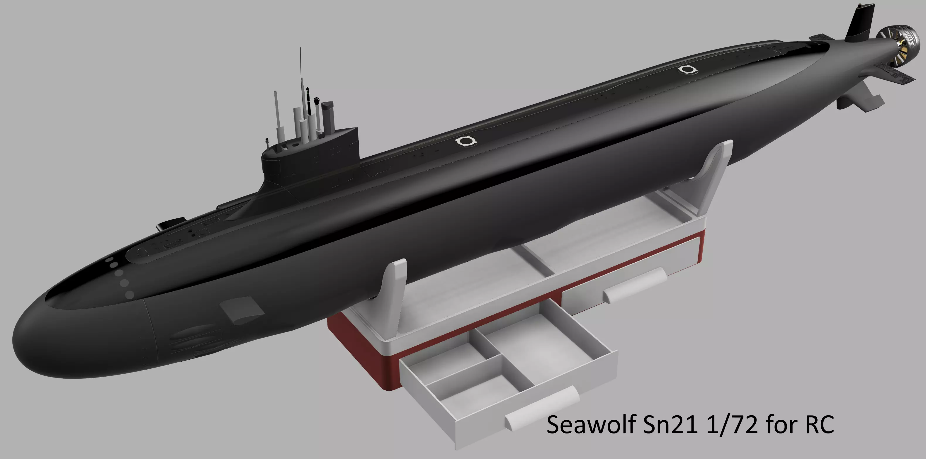 Project Seawolf: 1/72 Scale Nuclear Attack Submarine (SSN-21)Bring the engineering of the world’s most advanced submarine to your own workshop with this detailed 3D design of the US Navy’s Seawolf-class. With a length of approximately 1.5 meters at 1/72 scale.